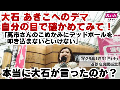 【デマに注意】「高市さんのこめかみにデッドボール」 #大石あきこ へのデマ!2026/1/31奈良街宣ノーカット #衆院選2026 #れいわ新選組 #大阪5区 #比例はれいわ #高市早苗 #選挙