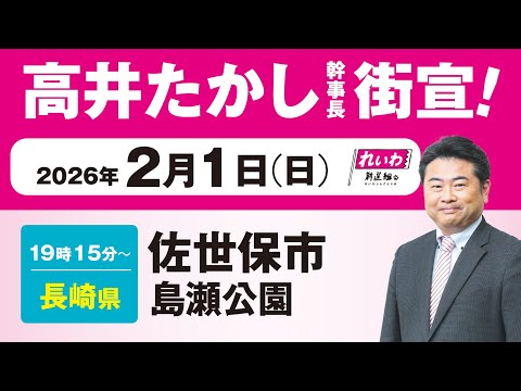【街宣LIVE】高井たかし 幹事長 #衆院選2026 #比例はれいわ 2月1日 長崎県・佐世保市 島瀬公園