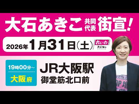 【街宣LIVE】大石あきこ 共同代表 #衆院選2026 #比例はれいわ 1月31日 大阪・JR大阪駅御堂筋北口前