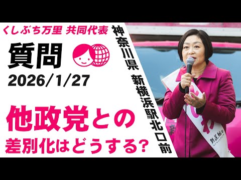 質問:他の政党との差別化はどうする? くしぶち万里 神奈川県 新横浜駅北口前 2026/1/27