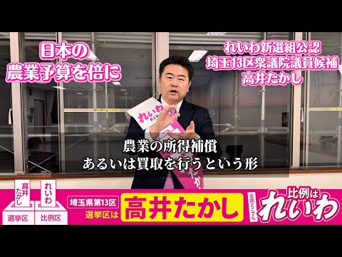 れいわ新選組 高井たかし 食の安全保障を進める。