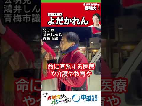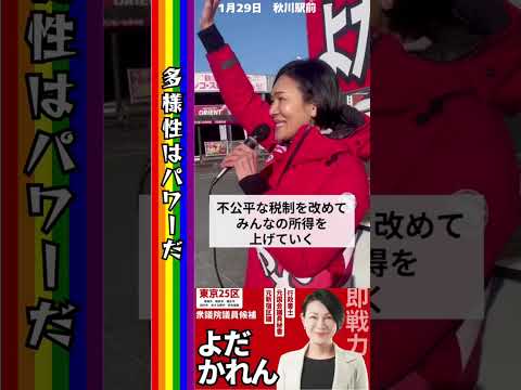 よだかれん衆議院議員候補(中道改革連合 公認候補・東京25区)、真面目な演説をちゃんとする。裏金自民党議員と国保ズルっ子の維新とはさよなら。