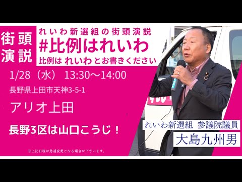 大島九州男 公式チャンネル 参議院議員 れいわ新選組 がライブ配信中!長野県上田市アリオ前山口こうじ応援📣‼️