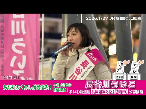 長谷川ういこ JR尼崎駅北口街宣01 れいわ新選組 兵庫8区 20260127