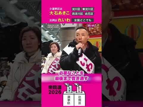 れいわ新選組は他党の悪口ばっかり言っている、それが何なんですか。俺たちがやってるのは学級会じゃないですよ。#大石あきこ #比例はれいわ #大阪5区 #衆院選2026 #選挙 #山本太郎 #消費税廃止