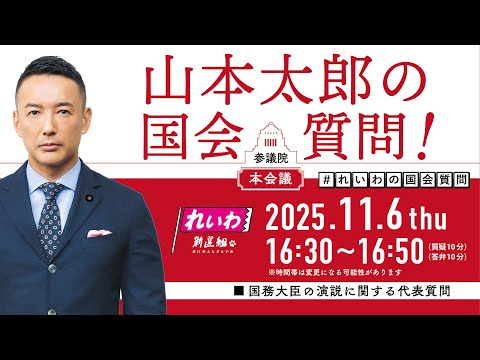 【LIVE!】参議院本会議 山本太郎の国会質問!(2025年11月6日 16時30分~)
