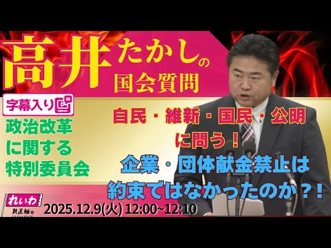 高井たかしの国会質問! 2025.12.9 衆議院 政治改革特別委員会 字幕入りフル