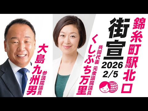 【街宣LIVE】山本太郎代表全力応援!くしぶち万里候補 東京14区 #衆院選2026 #比例はれいわ 2月6日 東京都・錦糸町駅南口