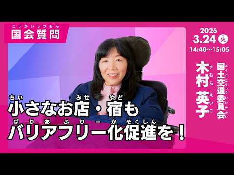 木村英子の国会質問!「小さなお店・宿も バリアフリー化促進を!」参議院 国土交通委員会(2026年3月24日14時40分頃~)