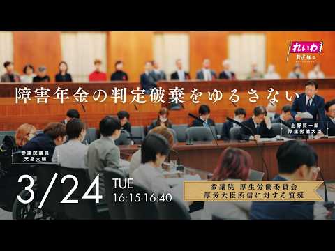 天畠大輔の国会質問!≪障害年金の判定破棄をゆるさない≫参議院・厚生労働委員会 2026年3月24日16:15頃~