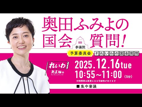 奥田ふみよの国会質問!参議院 予算委員会(2025年12月16日10時55分頃~)