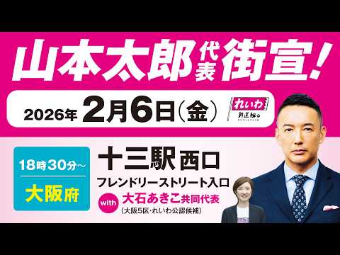 【街宣LIVE】山本太郎 代表 全力応援! 大石あきこ共同代表・大阪5区れいわ公認候補 #衆院選2026 #比例はれいわ 2月6日 大阪府・十三駅西口 フレンドリーストリート入口