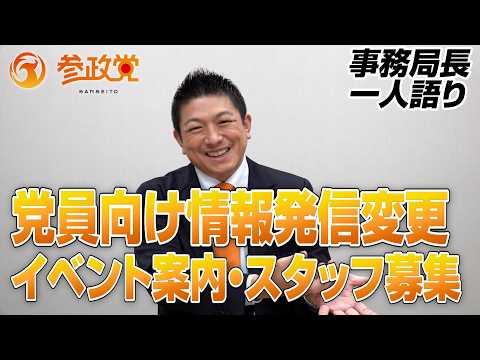 党員向けの情報発信変更、イベント案内・スタッフ募集等【事務局長一人語り】