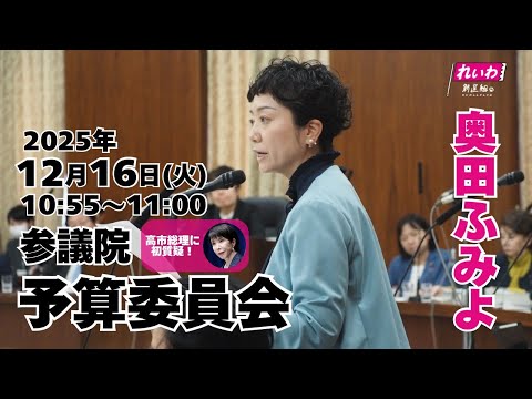 奥田ふみよの国会質問!参議院 予算委員会(2025年12月16日10時55分頃~)