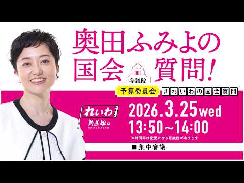 【LIVE!】参議院 予算委員会 奥田ふみよの国会質問!(2026年3月25日 13時50分~)