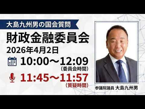 【大島九州男の国会質問】4月2日(木)財政金融委員会