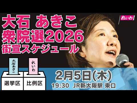 【LIVE】#大石あきこ #衆院選2026 2月5日19:30 JR新大阪駅 東口 #比例はれいわ #れいわ新選組 #大阪5区 #淀川区 #東淀川区 #西淀川区 #此花区 #山本太郎 #選挙
