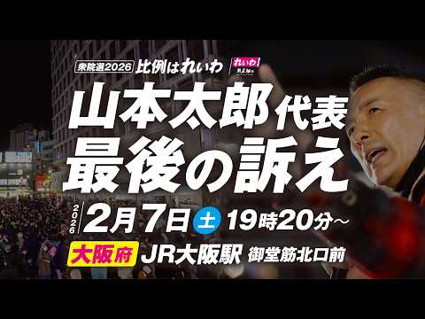 【街宣LIVE】山本太郎代表 最後の訴え #衆院選2026 #比例はれいわ 2月7日 大阪府・JR大阪駅御堂筋北口前